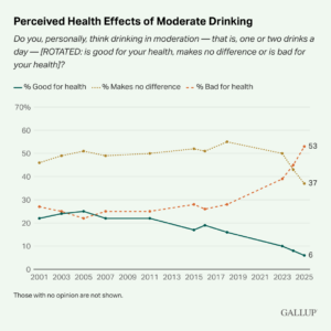 Gallup’s Lydia Saad says older Americans may be slower to accept new health advice due to decades of shifting recommendations. Young adults, by contrast, have grown up in an era where health warnings about alcohol are more common.