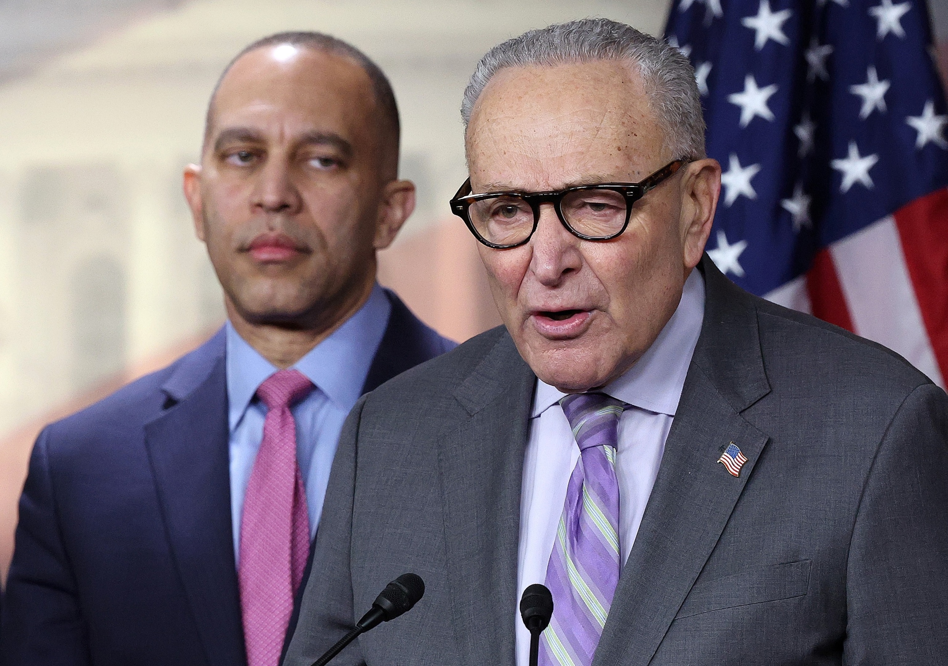 Senate Minority Leader Chuck Schumer joined by House Minority Leader Hakeem Jeffriesspeaks at a press conference at the U.S. Capitol, February 4, 2026 in Washington. Kevin Dietsch/Getty Images